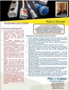 Evaluating Existing Equipment • How much downtime can you afford during the move? If downtime is a problem, you may have to move equipment in stages. This should allow you to keep some key equipment on-line as equipment is relocated. • Can current equipment be reconfigured or temporary equipment used to limit downtime? • Does all of the equipment need to be moved to the new location or is this an opportunity to upgrade to more efficient equipment? If you have equipment that needs to be replaced, there is no better time to do it. • Inventory and make a list of each piece of equipment giving it a name. Identify the required power and IT cabling required for each server and rack. • Measure and log each cabinet for footprint size, total amp draw and number and type of power feeds (NEMA number) that run to each cabinet. Add the load of all servers so you know the total KW you will be adding to the new site and that you have ample power capacity to facilitate the additional load. • If the server cabinets have solid doors you may want to consider removing the solid doors and replace them with a mesh type for better utilization of your existing cooling system and the hot/cold isle configuration. This is something you might want to do prior moving the equipment into its new location. Questions to ask Outside Service Providers • Will the equipment be shipped within the racks and cabinets as a whole unit, or removed and shipped separately? They may have the equipment and experience to handle the move different than you would. • Will they need to come into the data center to collect the equipment or receive it at the loading dock? • Who is responsible for de-installing the equipment from the racks? • Have someone review the carrier’s insurance policies and request a certificate of insurance for your records. Making sure the insurance covers every aspect of the move, labor, on-site management and transportation. • Pre-review and approve their methods of transportation. Does the equipment need to be transported via ground or air. Some critical equipment might need to be moved quickly over a long distance, if so, Air transportation is your only option otherwise stick with ground; it will save you a lot of money. • Inquire about the trucks that will be used for transport, are they owned by the moving company or will they hire third party carriers? • Inspect the vehicles prior to loading, believe it or not, poorly maintained vehicles breakdown. Though you can’t do a full checkup, a quick visual inspection will help you to sleep at night knowing that the trucks will make it to their destination. • Monitor the equipment as it is being loaded into the trucks and inspect to make sure the truck doors are secured and locked prior to departure. • Will security accompany the equipment throughout the move? • Extreme temperatures are not uncommon in the back of trucks depending on the time of year and location. Is there any risk from heat or cold, is there need for a climate controlled environment during transport? • What type of inventory tracking and control system will they use? Preparing Space for New Equipment • The orientation and relocation of old equipment into a new facility almost always requires new branch circuit power whips and data cables. Make sure the cable colors are consistent with pre-established coding schemes and cable management plans. • If any of the power feeds have a straight blade connector change them to the locking type prior to energizing them in your new site. • Know your electrical and cooling load prior to the move to ensure that the new site can handle the added load, and don’t forget to factor in for future growth. • Be sure the PDU/RPP has amble capacity for dual corded server cabinets for fail over. This will not only ensure increased uptime but will allow you to shut down one critical path for maintenance without shutting down your servers. • Using the total amps load, calculate your cooling capacity by converting KW to BTU’s. Calculate what the total heat load of cooling you will add to the new site. 1 Watt = 3.41 BTU’s and 12,000 BTU’s equal one ton of cooling. • Meet with IT and layout new equipment in relation to existing equipment, server cabinets, PDU/RPPs. It is best if you have a drawing of the data center with its existing equipment identified. • Use a grid system for the data center raised floor showing each floor tile with its own unique address. When creating an equipment layout consider which PDU/RPP’s will be used to feed the new servers. You want to minimize the length of the power runs and also take into account the IT cabling required to be installed. Be sure the new equipment will not affect your hot/cold aisle configuration. • Pre-install all the power whips required for each server cabinet along with a brush grommet for the floor penetrations. A simple way to prepare the raised floor to receive the equipment is to follow the grid system and place waste paper baskets with a label on each identifying the piece of equipment to be installed at that spot. This makes installation quick and easy without any confusion. (SEE PICTURE BELOW)